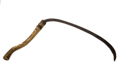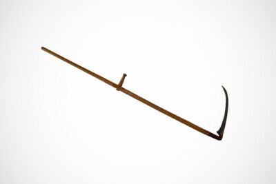 Имеет небольшой размер, хорошо подходит для работы на неровной, каменистой местности, полях с кочками и ямами. Отлично справляется с толстыми стеблями, кустарниками, сухой травой. Косовище прямой формы с удобной рукояткой, длина обычно до 50 см. Полотно косы загнуто, длиной около 35 см. Рукоятка у некоторых моделей регулируемая, что позволяет при необходимости разобрать косу в компактный размер для удобства переноса.