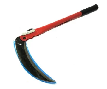 Эта коса имеет изогнутое косовище небольшой длины. Полотно загнуто в форме полумесяца. Коса горбуша напоминает собой серп. Хорошо использовать при обкосе пней и деревьев, в болотистых и каменистых местностях.